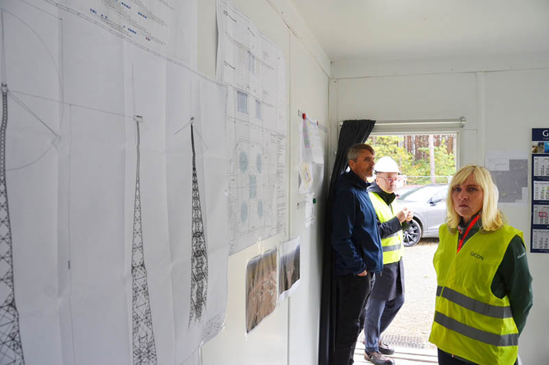 Da schau her: Allianz Underwriterin Antje Frank (r.) und Gicon-Chef Jochen Großmann (l.) besprechen mit einem Mitarbeiter den Baufortschritt