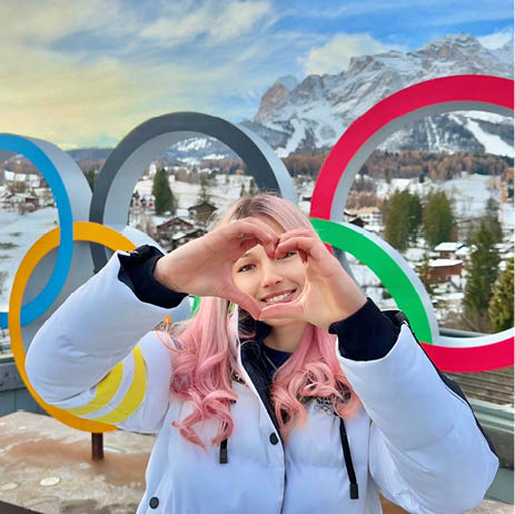 Unsere Beziehung ist noch so jung und vielversprechend. Wir reisen durch die Welt, und langsam kommen auch etwas Glamour und Fame dazu. Das genieße ich genauso wie die Trainingstage mit dir draußen in der Natur, das Panorama, die klare Luft, die Weite. Das Hier und Jetzt, in dem alle anderen Gedanken leiser werden. Das lädt zum Träumen ein. Und das tun wir auch. Unser gemeinsamer großer Traum sind jetzt die Olympischen Spiele 2026 in Mailand-Cortina.