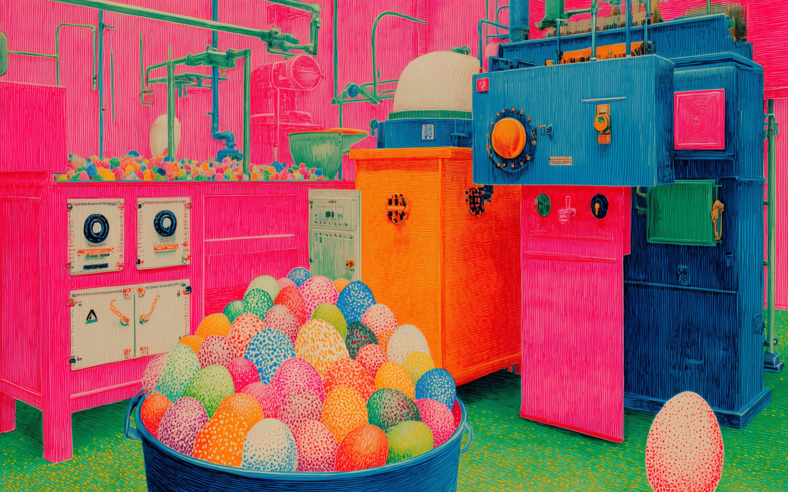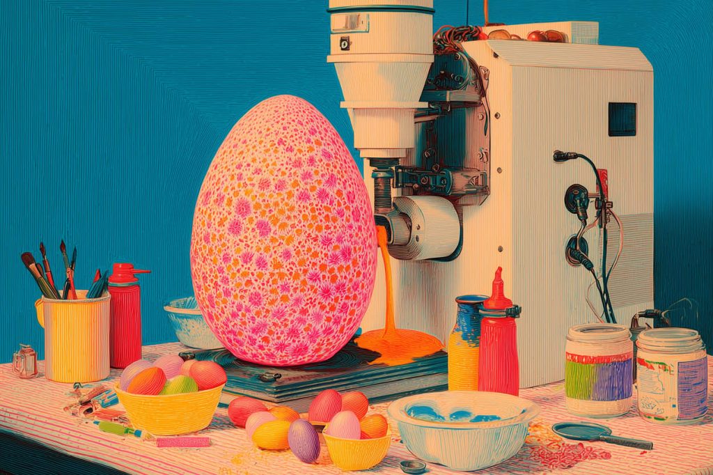 Perfekt bemalte Ostereier entstehen beim Osterhasen längst nicht mehr ausschließlich in Handarbeit. Dafür hat er sich eine hochmoderne Eiermalmaschine angeschafft – und die Produktion läuft zunächst reibungslos an. Doch dann passiert es: Ein besonders großes Ei gerät in die Farbenmischeinrichtung und zerbricht. Dotter und Eiweiß treten aus und beschädigen sowohl den Motor als auch die Steuerungseinheit.