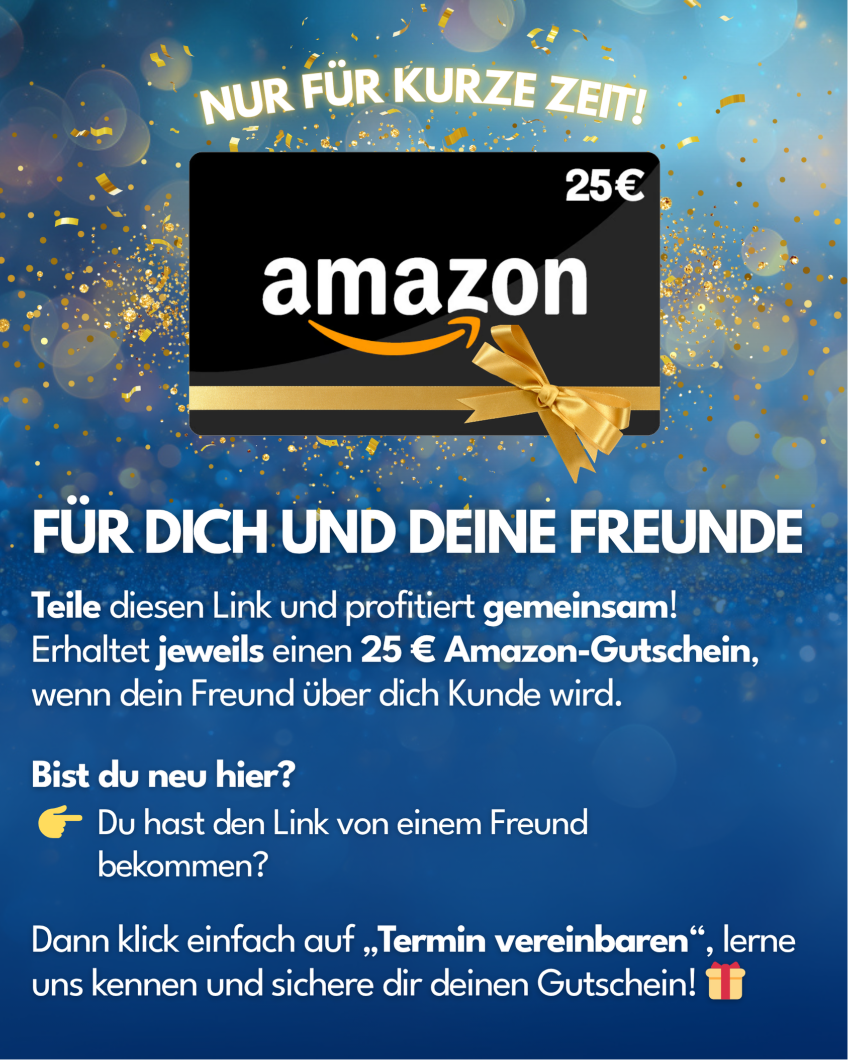 Aktion gültig bis auf Widerruf. Teilnahmeberechtigt sind nur Bestandskunden der Allianz Vertretung Niklas Manßen. Der Gutschein wird sowohl an den Werber als auch an den geworbenen Neukunden ausgegeben, sobald der neue Kunde einen Versicherungsvertrag bei der Allianz Vertretung Niklas Manßen erfolgreich abgeschlossen und dieser Vertrag mindestens 14 Tage bestanden hat (Widerrufsfrist abgelaufen). Keine Barauszahlung. Gilt nicht für eigene Verträge oder bestehende Kundenbeziehungen. Änderungen und Irrtümer vorbehalten. Amazon ist weder Sponsor noch Veranstalter dieser Aktion.